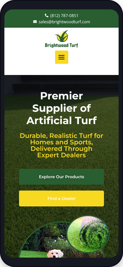 Brightwood Turf is an artificial turf supplier that sells to dealers. They needed a way to showcase their different turf products, find new dealers, and help customers locate dealers closest to them.